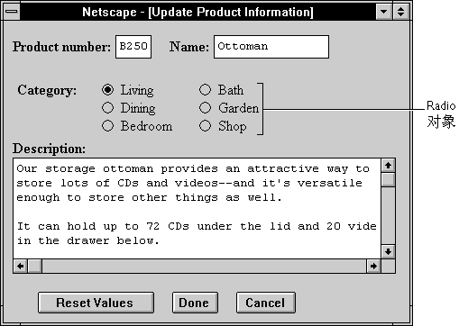 一个 Radio 对象是一个表单元素,并且必须在 FORM 标签内定义。